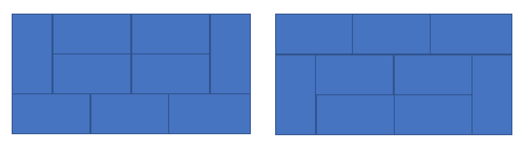 3×N 벽이 2×1 및 1×2 타일로 채워지는 경우의 수를 구해 봅시다.