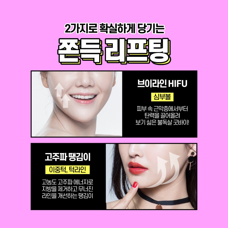 한 해를 받아들일 준비를 해야 하는 연말이면 주변 지인들과의 약속도 끊이지 않는데요.지금부터 미리 준비해야 연말은 물론 내년에도 확연히 다른 모습을 기대할 수 있습니다.지앤영피부과 9~10월 행사로 턱선, 이중턱, 심부볼 리프팅 외에 눈가와 자신에게 맞는 다양한 리프팅 이벤트를 특별히 경험하실 수 있습니다.리프팅 관련 문의사항은 편하게 강남지앤영피부과로 문의해주세요.지앤영피부과 02-3486-2420 ▼ 카카오톡문의 바로가기 ▼