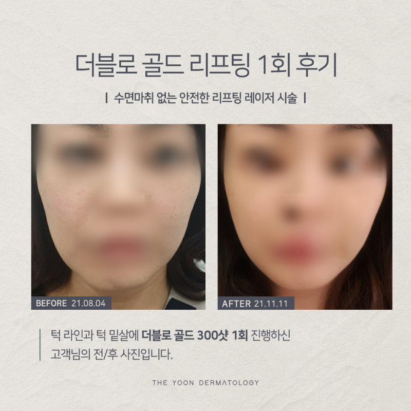이렇게 이중턱과 심부볼이 드리워지면 얼굴이 커 보이기 때문에 괄호나 마사지를 통해서 관리하시는 분들이 많은데요.피부에 강한 마찰을 가하면 나중에 피부 처짐이 심해질 수 있다는 것을 알았습니까?그래서 근본적인 원인을 해결하기 위해서 피부과에 문의하시는 분들이 많은데요.환자의 탄력 정도에 따라 피부 절개나 수술적인 방법이 아닌 리프팅 시술을 몇 가지 소개해 드리고자 합니다. 더블 로우 골드 리프팅