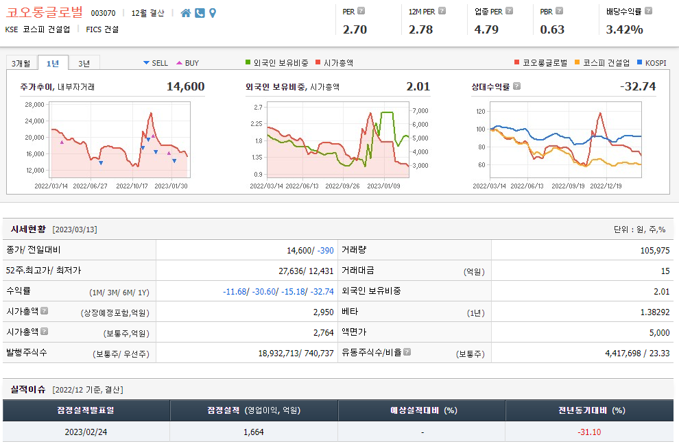 코오롱글로벌의 주가예측, 목표주가 및 기업정보에 대해 설명하는 글입니다. 주식투자를 하기 위해서는 기업의 현황과 현재의 시장동향을 분석하는 것이 필요합니다. 코오롱글로벌 주식의 주요현황 및 투자정보를 살펴보고 현재 시장에서의 위치를 ​​분석해 보겠습니다.