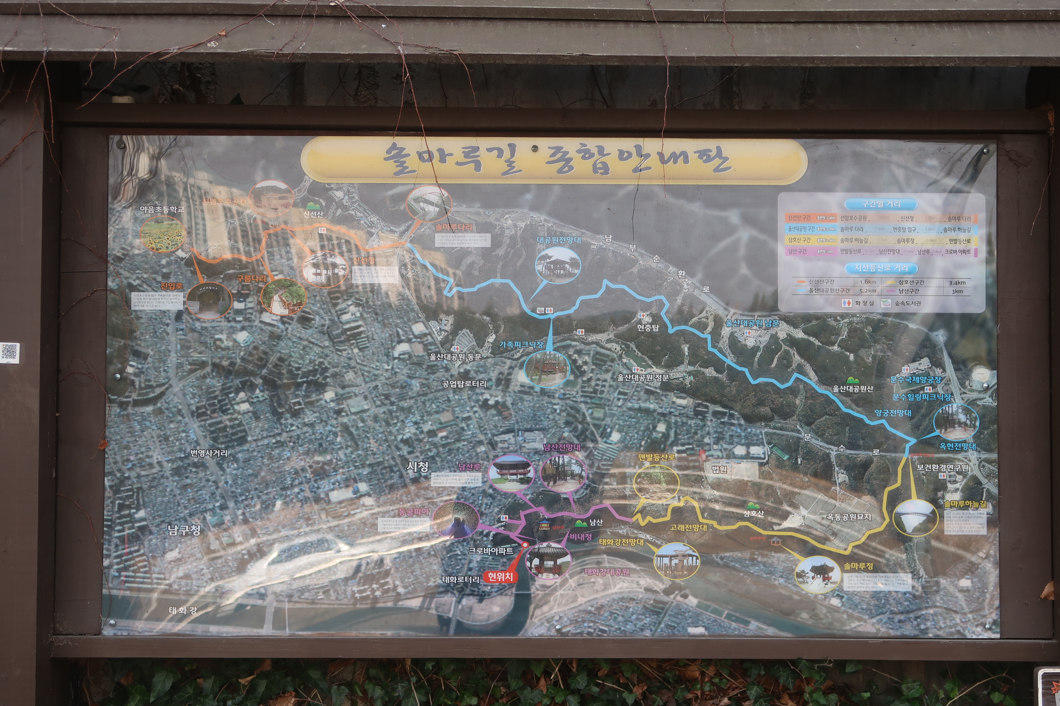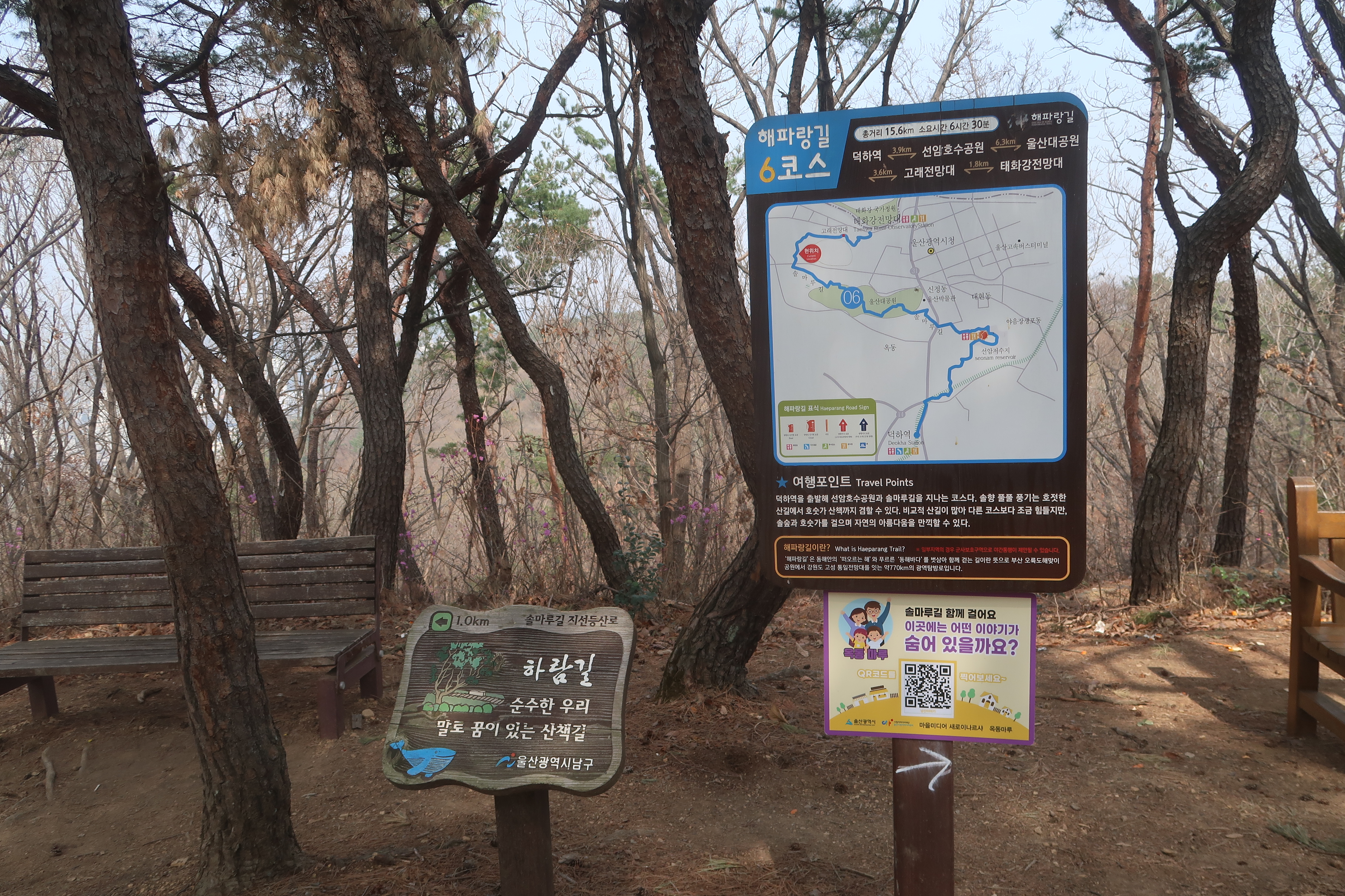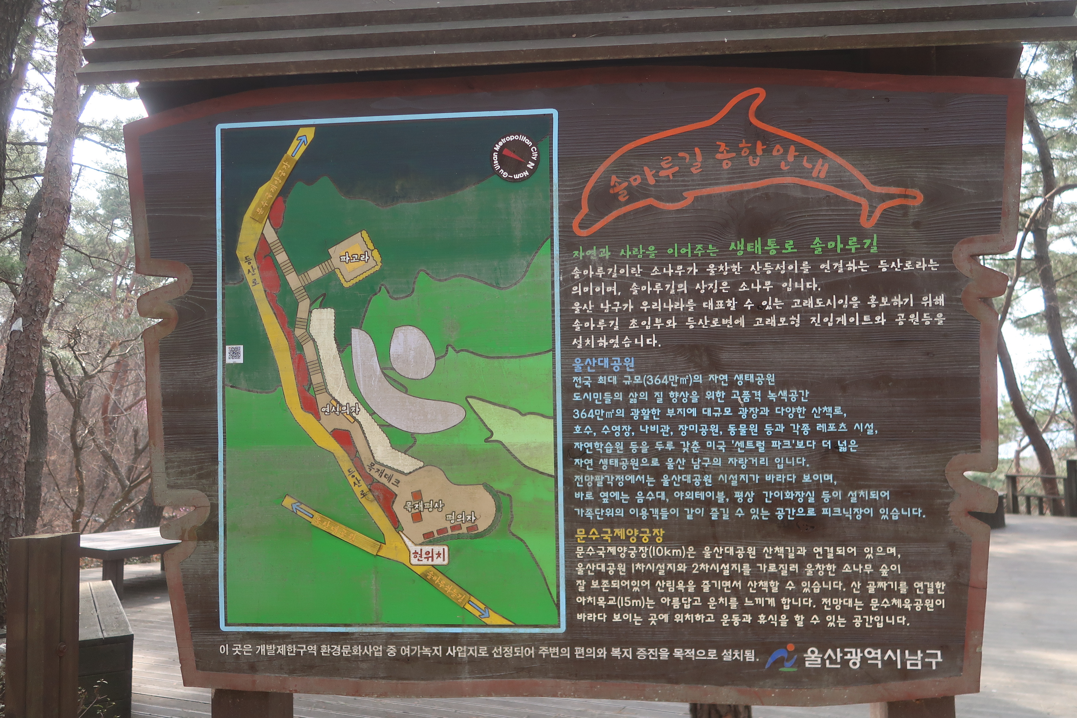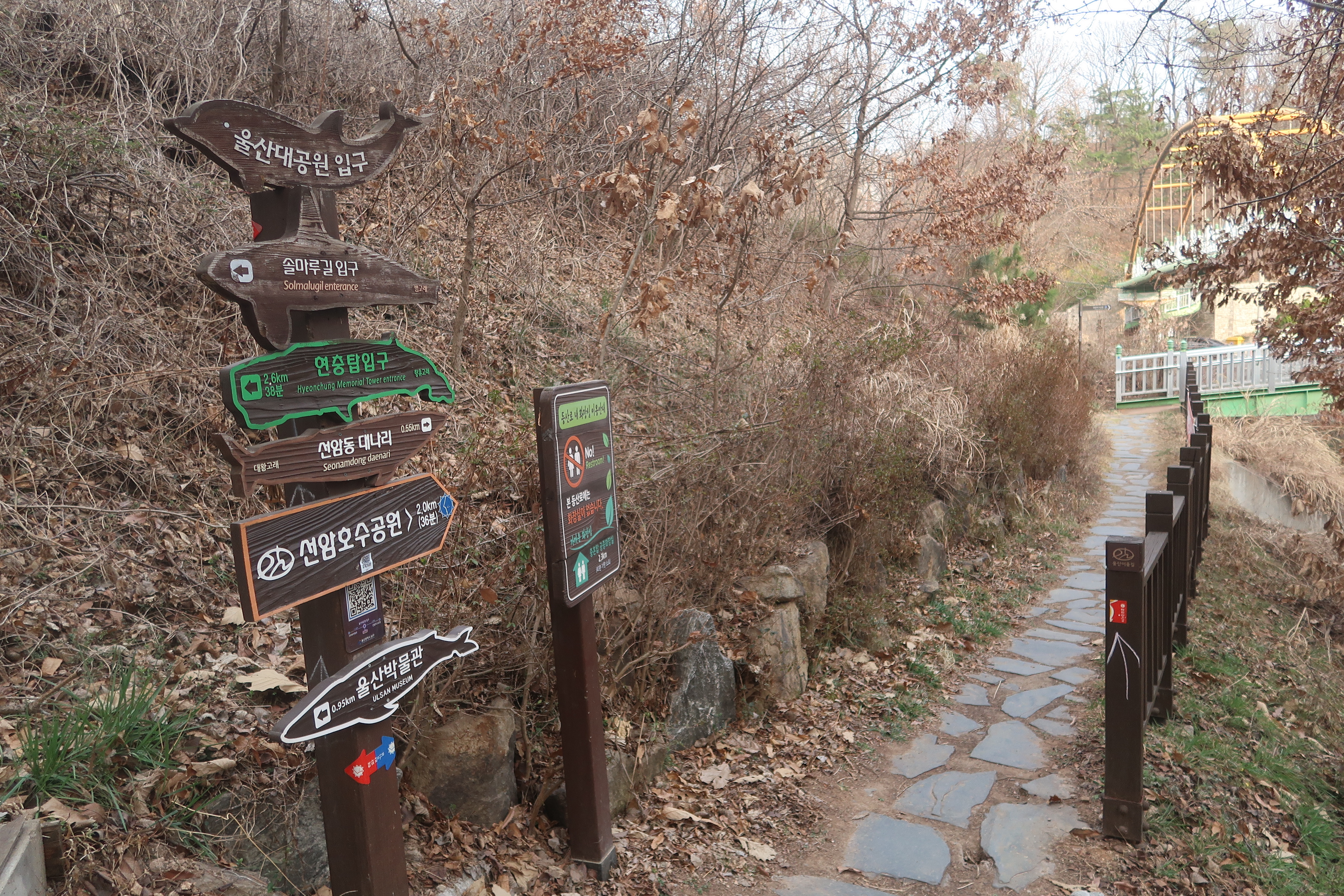 태화강전망대 – 남산어린이숲체험관 입구 – 신정중학교후문(화장실) – 삼호산삼거리 – 고래전망대 – 솔마루정전망대 – 와와삼거리