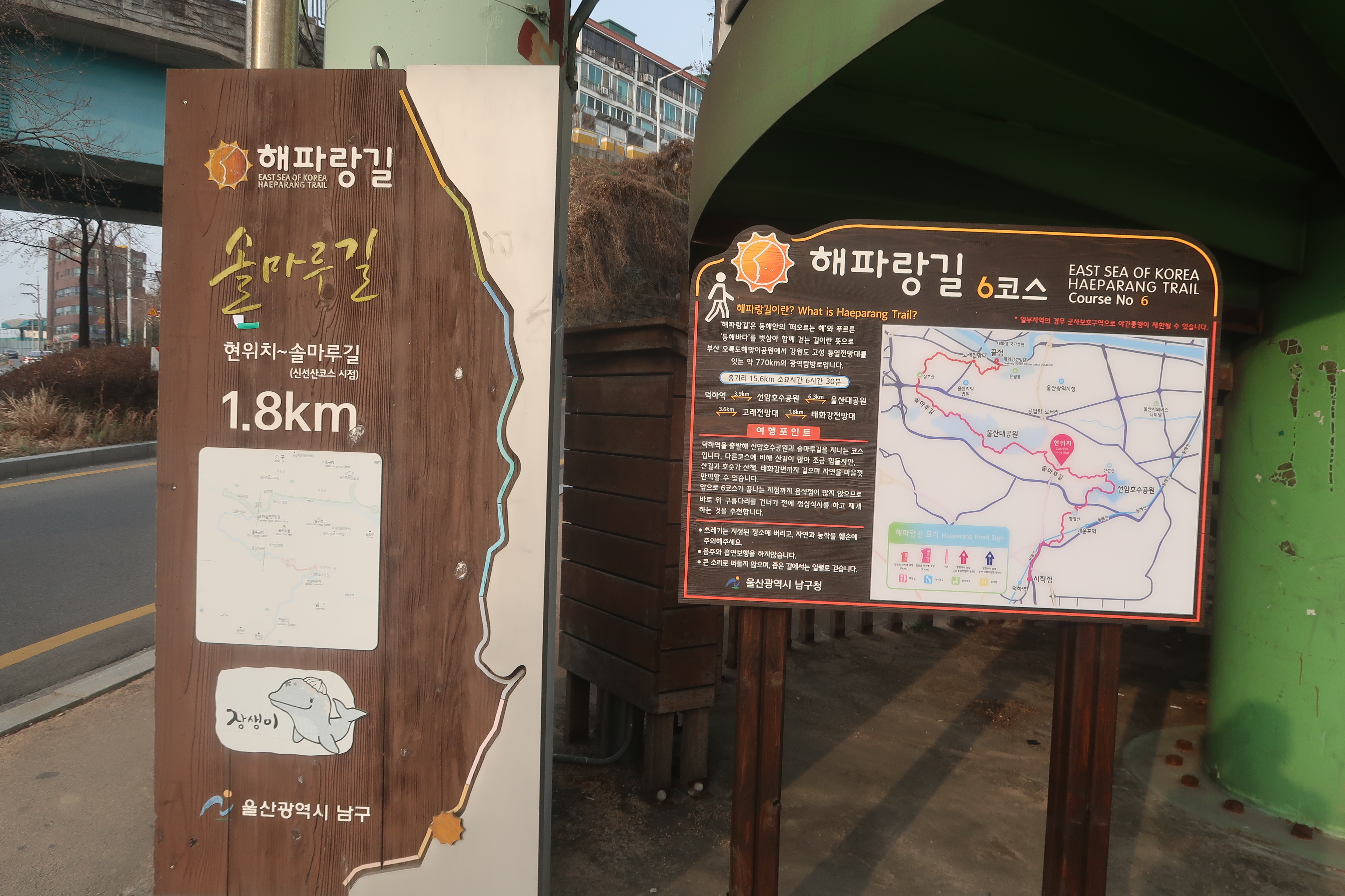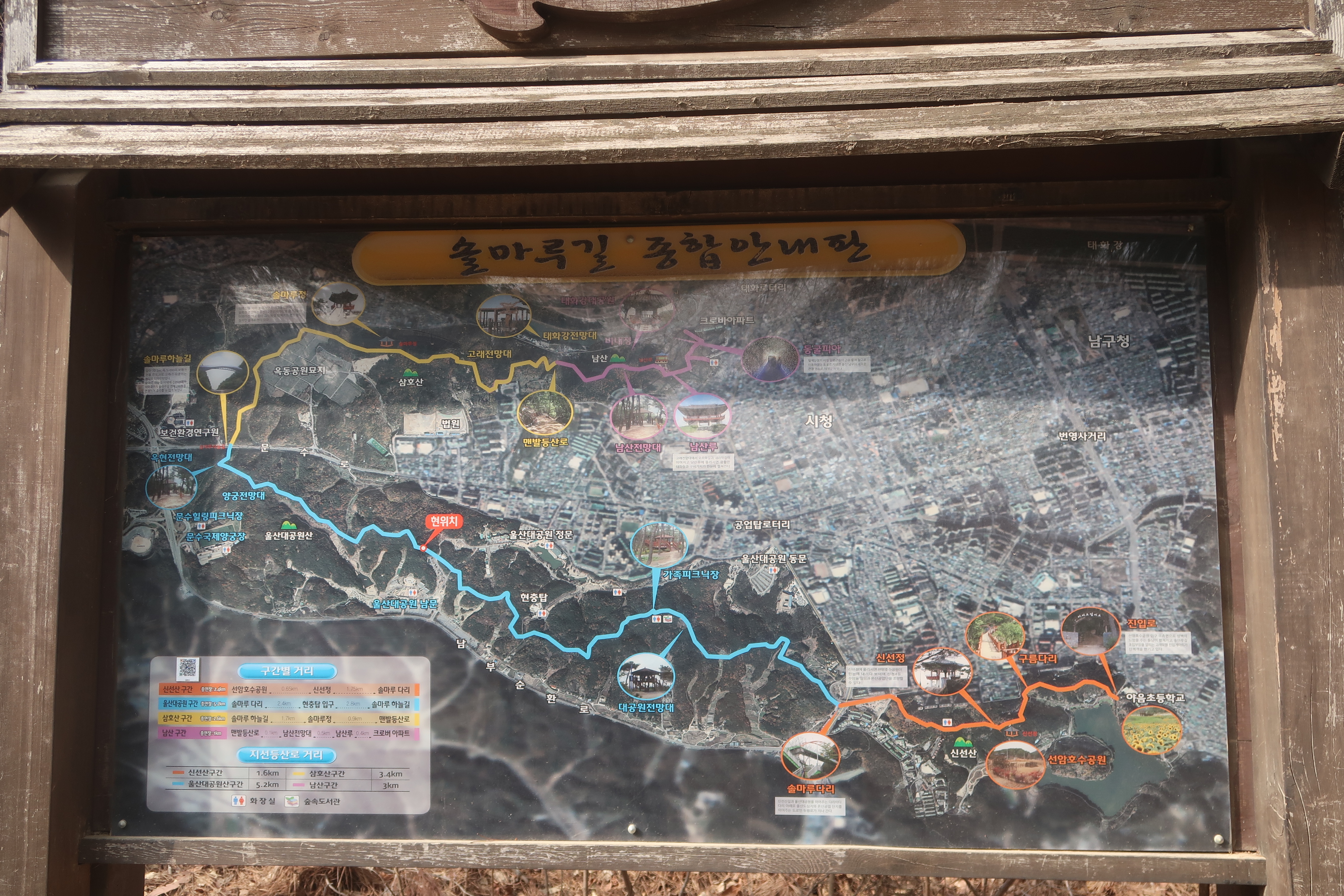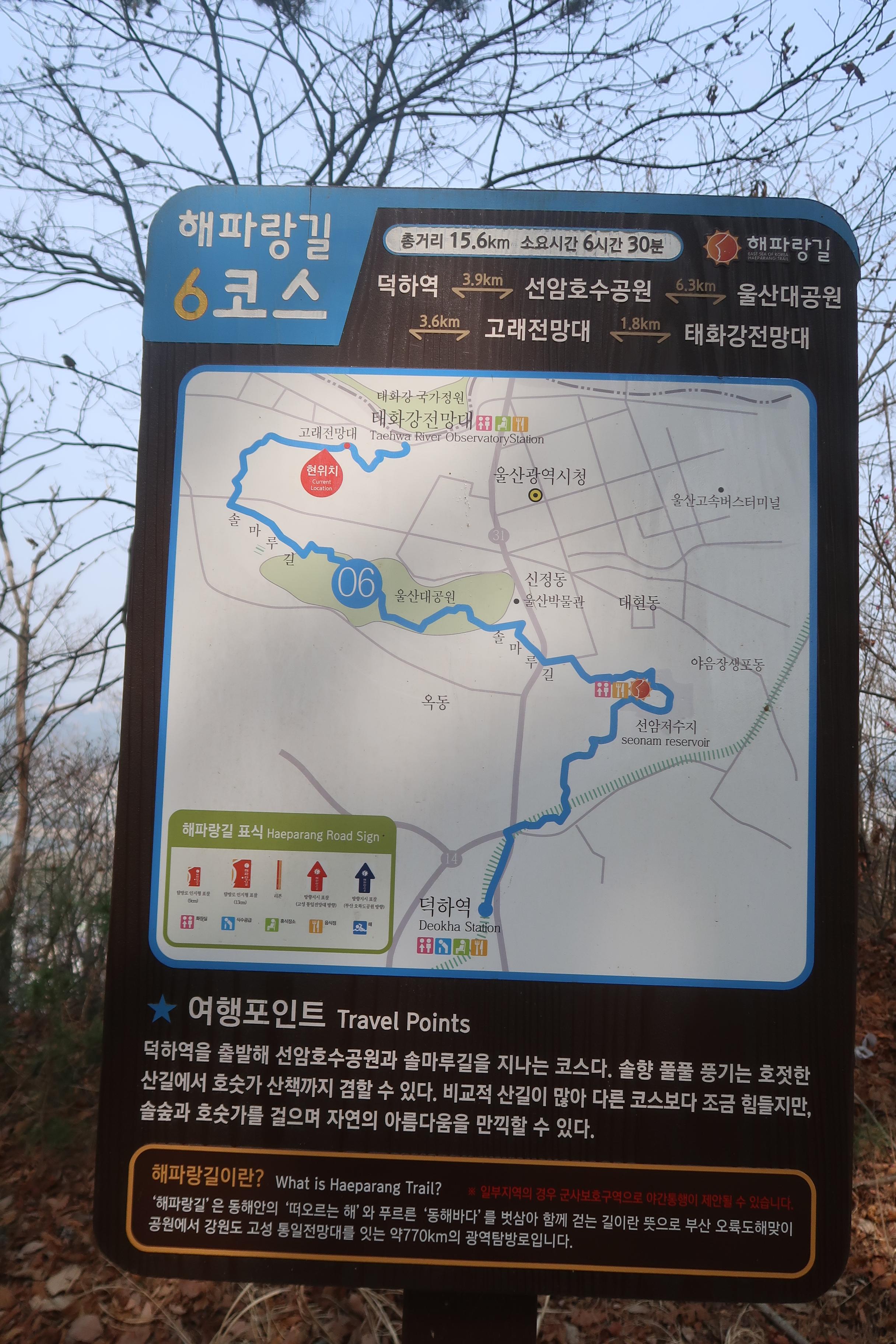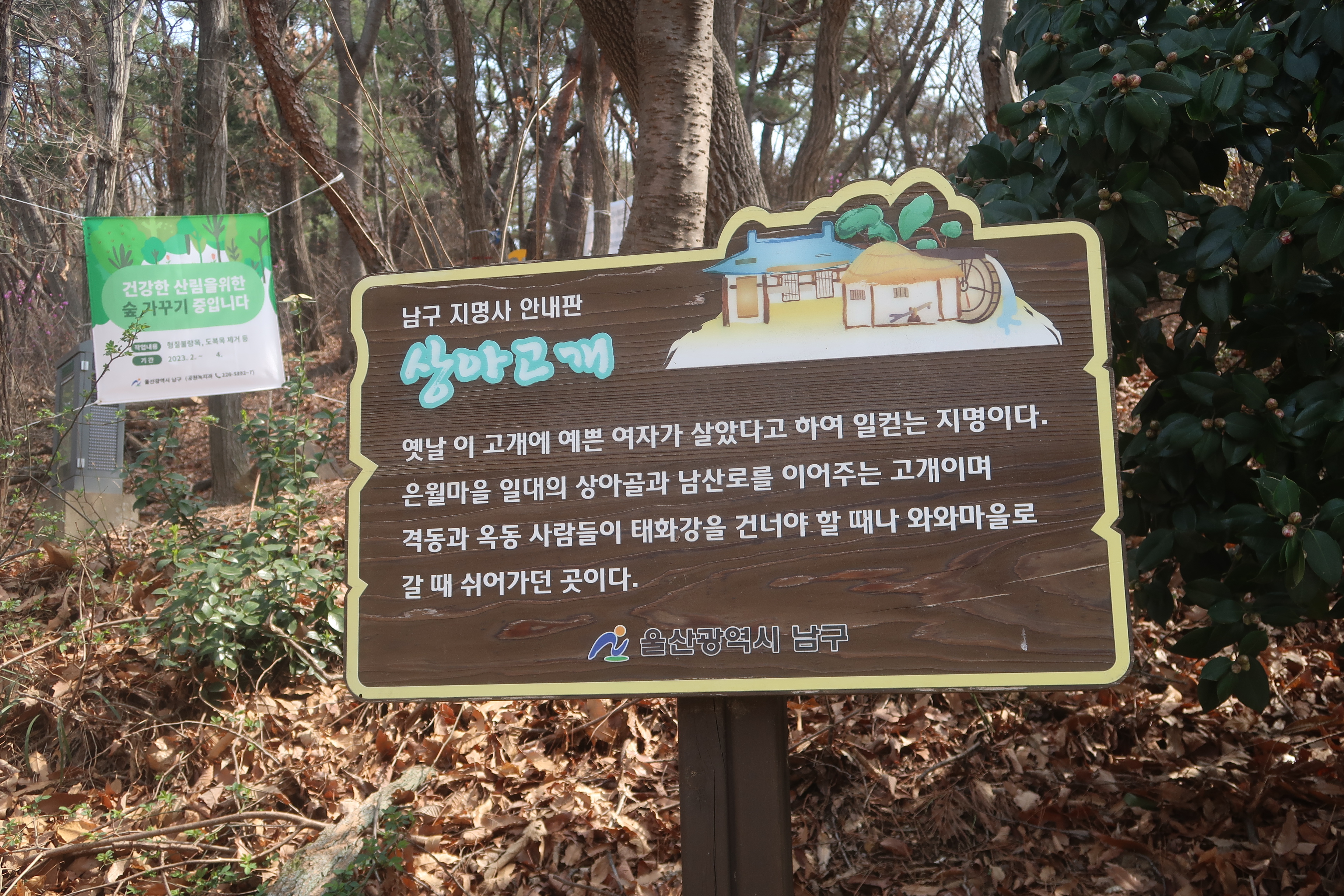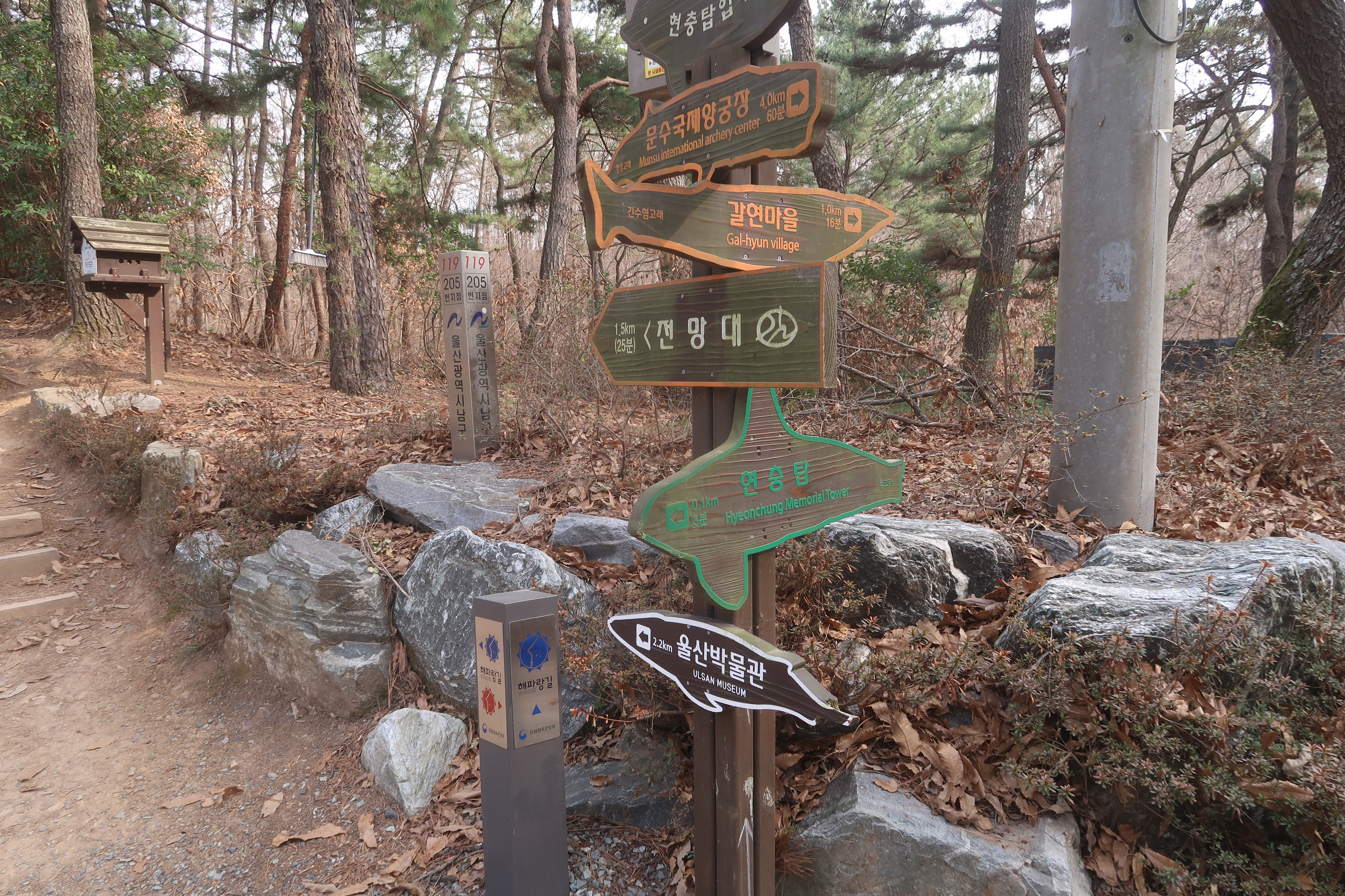 태화강전망대 – 남산어린이숲체험관 입구 – 신정중학교후문(화장실) – 삼호산삼거리 – 고래전망대 – 솔마루정전망대 – 와와삼거리