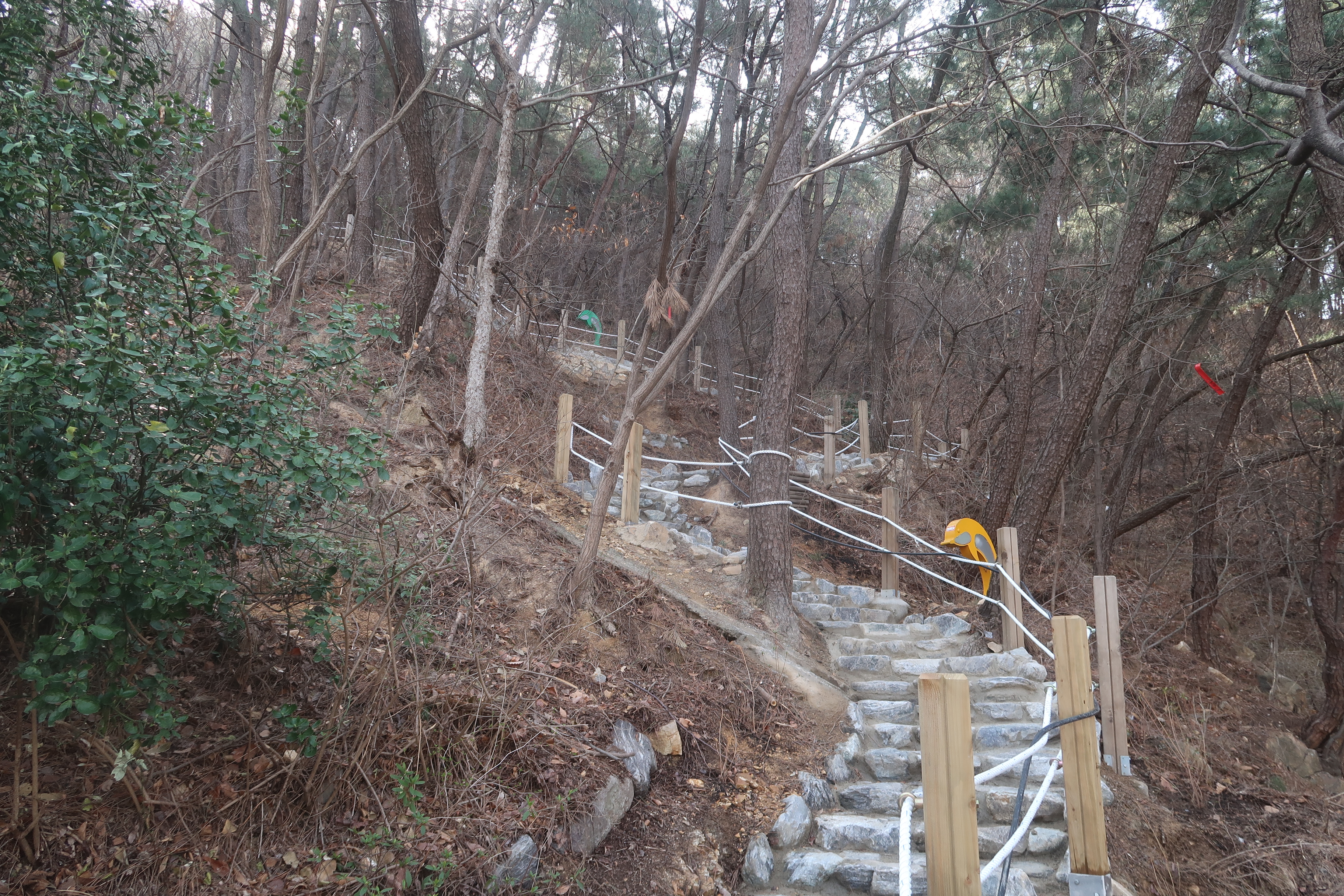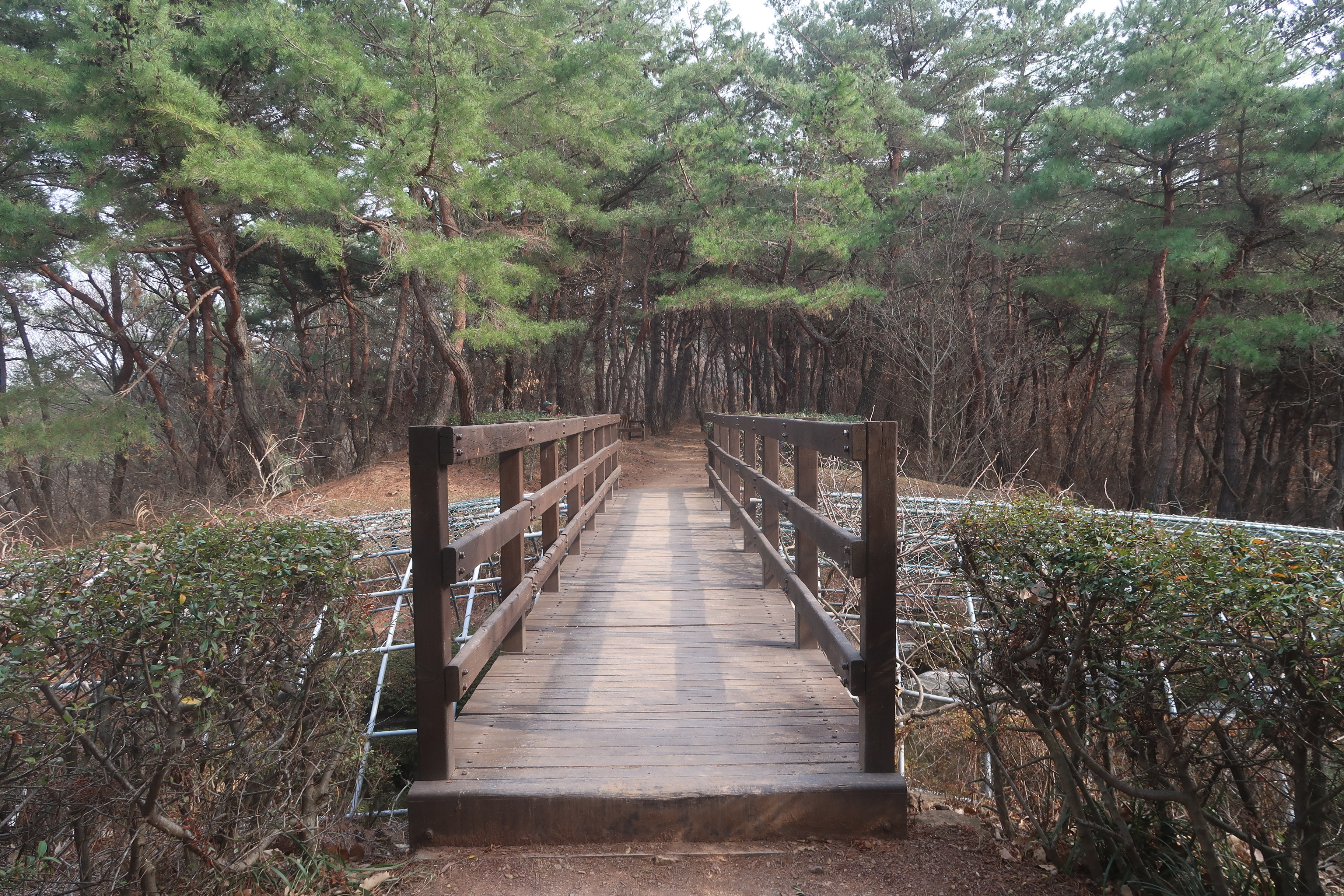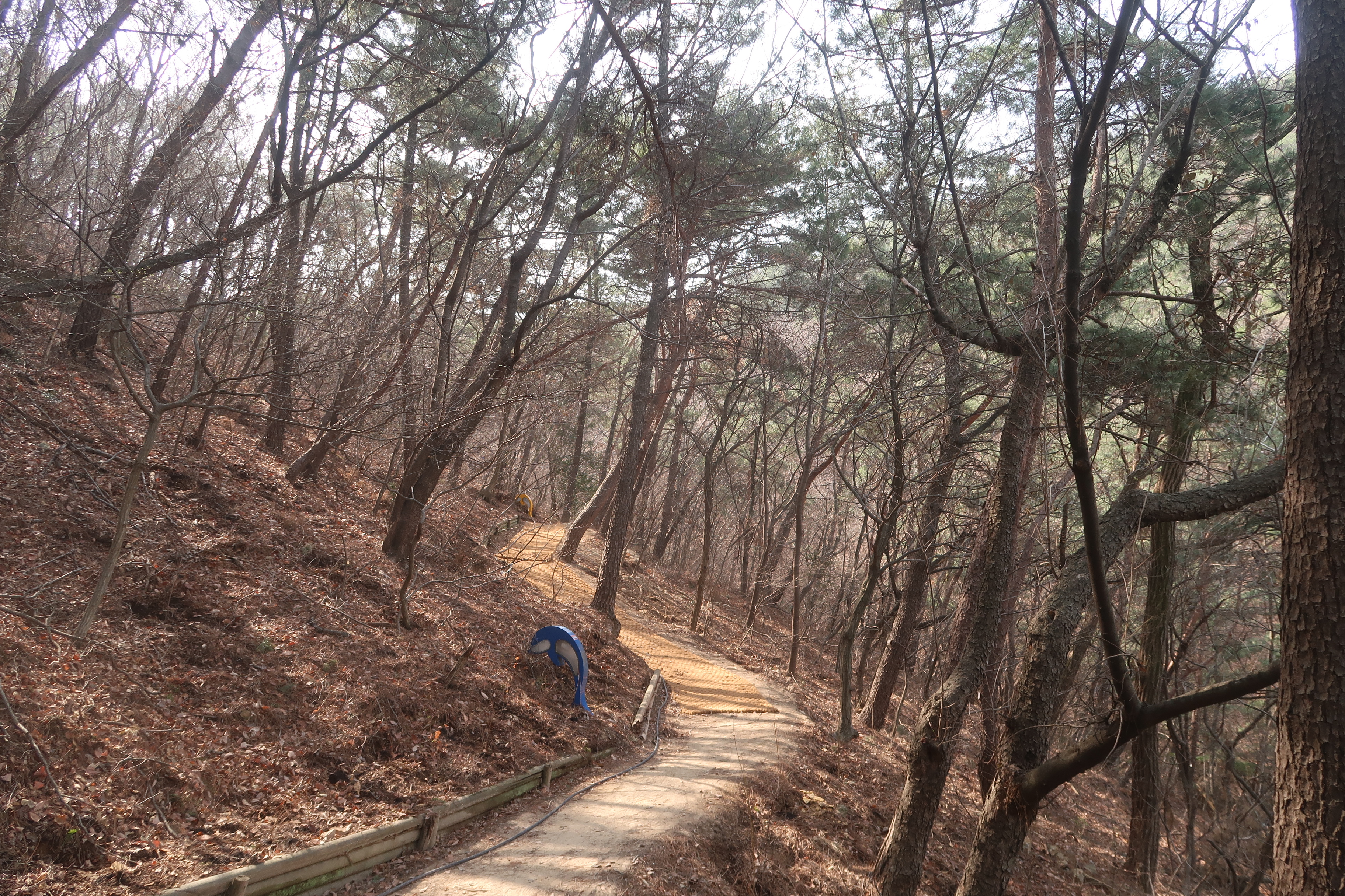 차폐등산로 2지점 – 삼호산(삼거리, 휴게소) – 솔마루하늘길(통로) – 용미등(옥현전망대,횡단보도 주의)-양궁전망대(왕복)