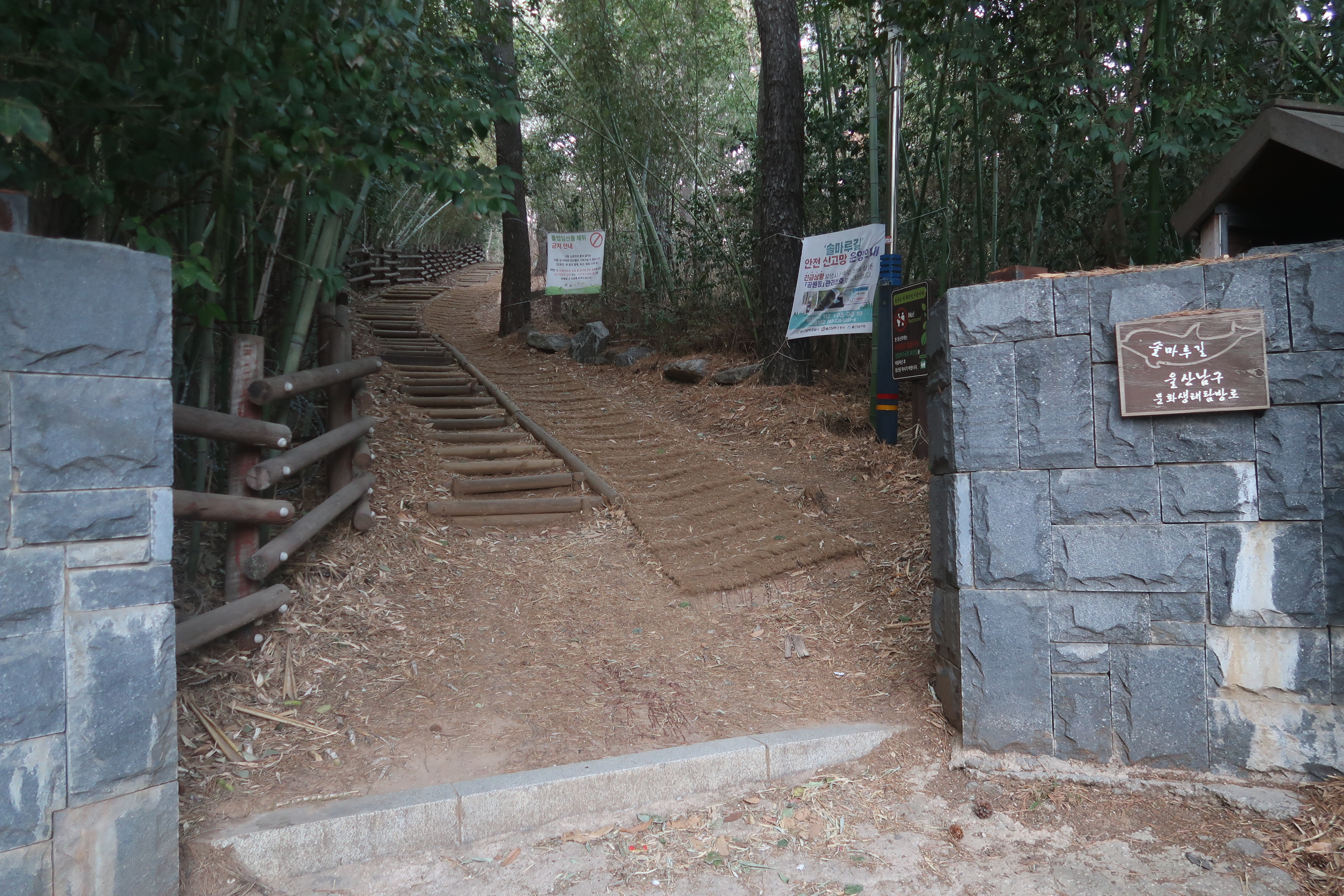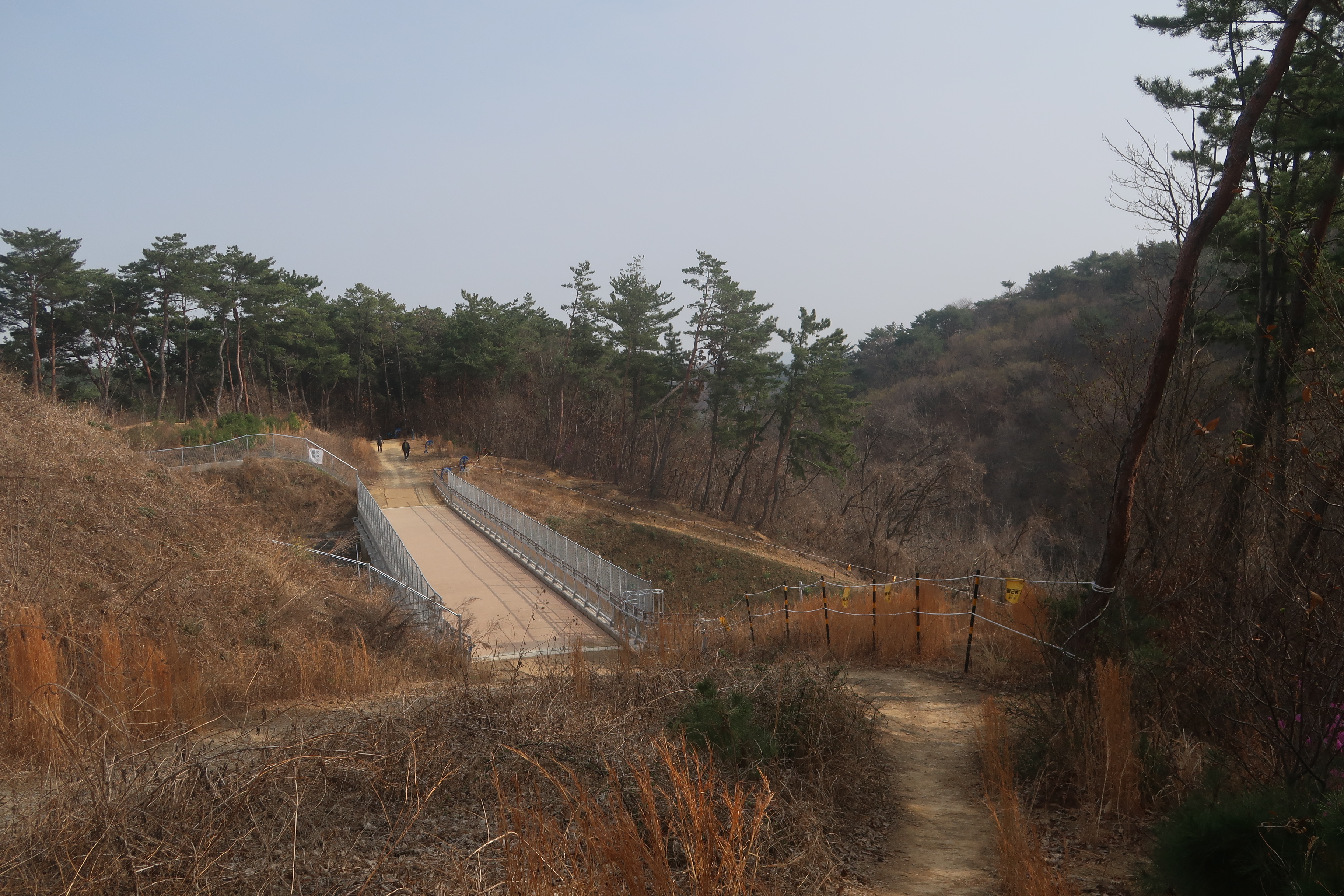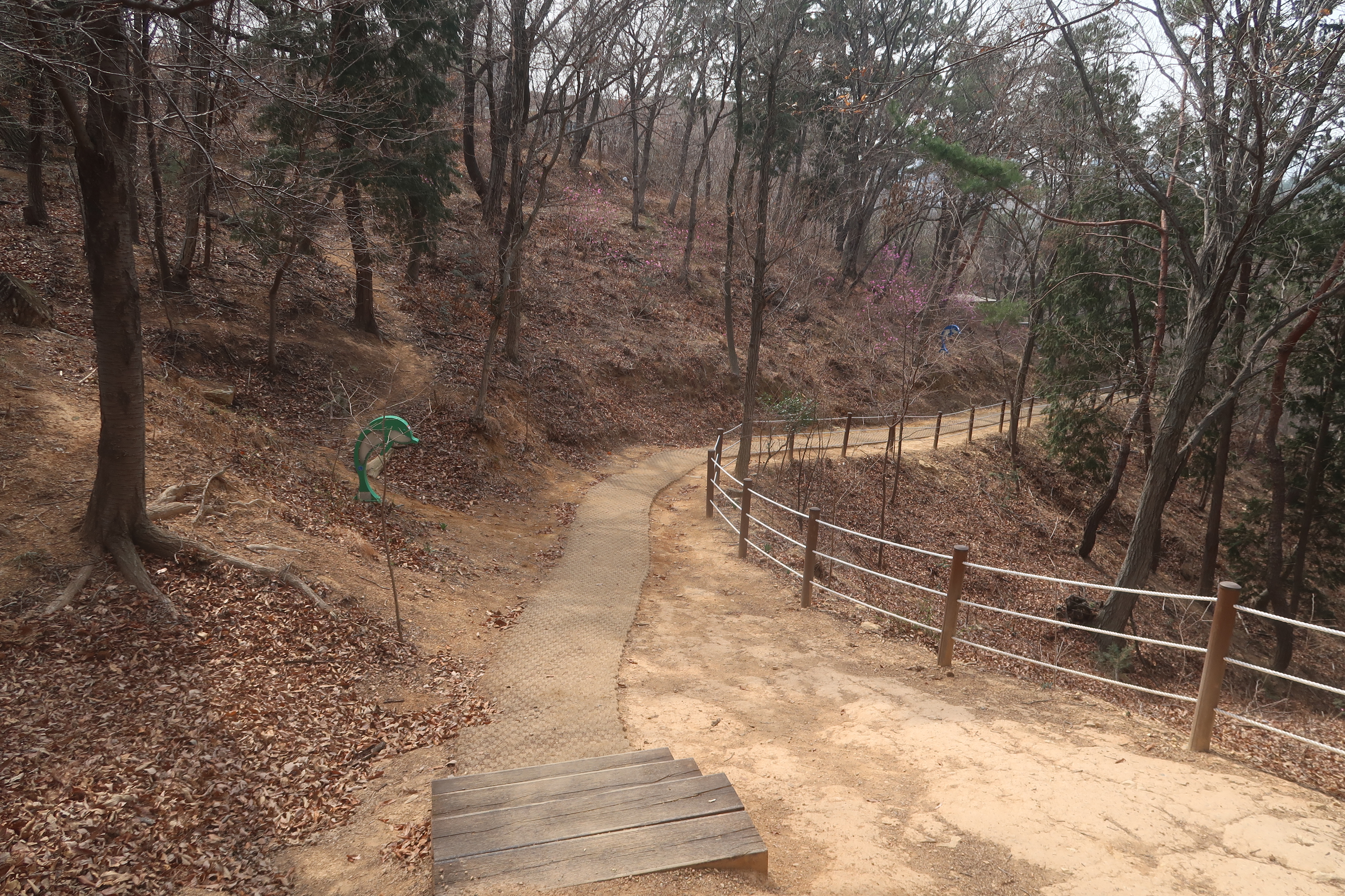 차폐등산로 2지점 – 삼호산(삼거리, 휴게소) – 솔마루하늘길(통로) – 용미등(옥현전망대,횡단보도 주의)-양궁전망대(왕복)